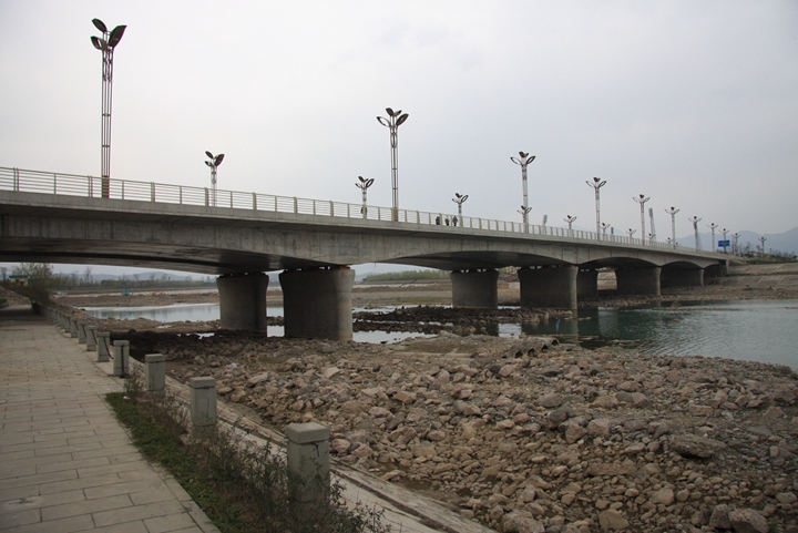 本桥的主要设计特点如下:桥梁规模大,设计复杂。本桥总跨径为230米,跨径较大,属于大桥;桥梁斜度为15°,采用现浇变截面连续梁方案,结构计算较复杂,设计难度较大。桥梁外形简洁美观。桥梁立面由三个全拱和两个半拱组成,与安昌河岸完美结合,形成平波卧虹的靓丽景观。抗震等级高,抗震计算细致充分,抗震措施完备。