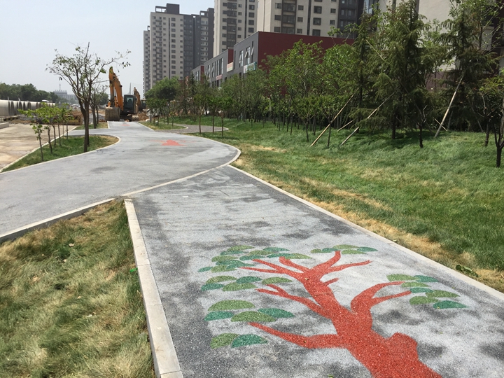 人行道分自由式绿道和平行式人行道两种,均采用全透水结构。