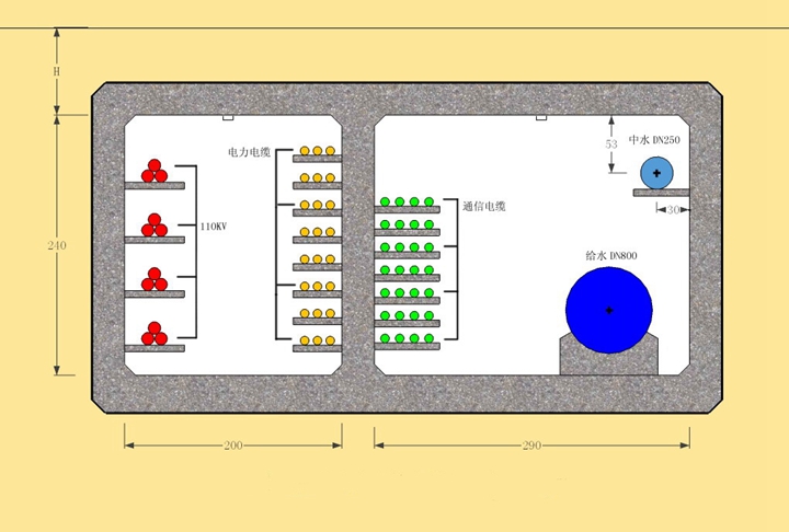 综合管廊沿济南奥林匹克体育中心的奥体西路、奥体北路和龙洞路敷设,全长约4公里。纳入管线有给水、中水、通信、电力管线。