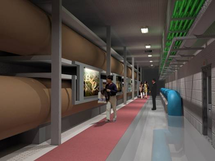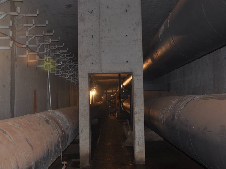 容纳的管线较多,包括2根DN1000热力管道、 1根DN1000给水管道、1根DN900给水管道、弱电管道、220KV、110KV、10KV电力管道及预留的中水管道、空调管、直饮水管道等。