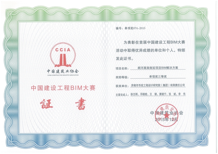 中的应用”获得二等奖,“顺河高架南延项目BIM解决方案”获得三等奖;另外,“BIM技术在分离式立交糖心vlog
